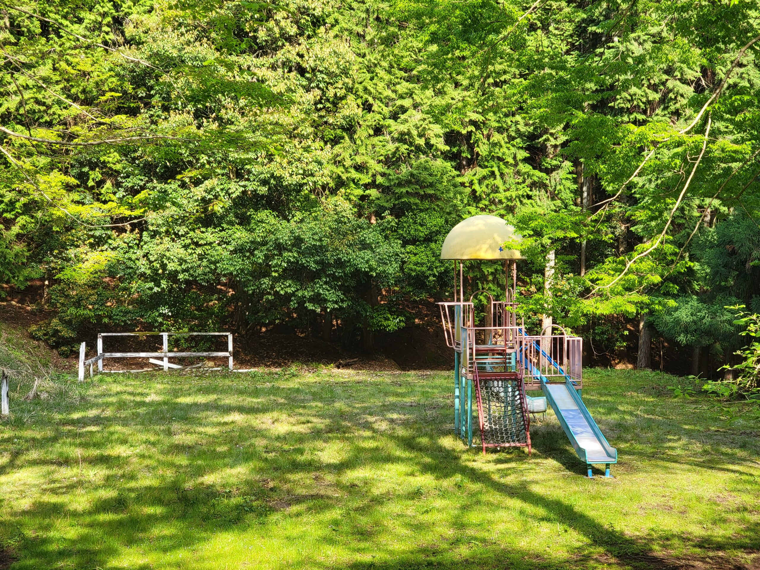 敷地内には子供たちが安心して遊べる遊具エリアが整備されています。 芝生の上に設置された滑り台や遊具は、自然の中で思い切り体を動かすのにぴったり。 周囲は緑豊かな環境で、親御さんが安心して見守れるスペースも確保されています。 自然の中で遊ぶことで子供たちの創造力や冒険心を育むとともに、 家族の思い出作りにも最適です。都会では味わえないのびのびとした時間を提供します。