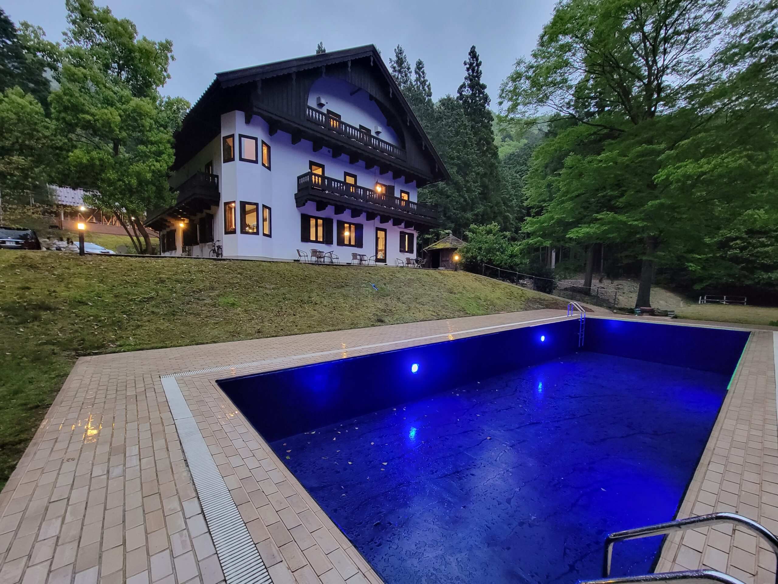 夜になるとプールエリアはライトアップされ、昼間とは異なる幻想的な雰囲気を楽しめます。 青く輝く水面と、周囲の自然が織りなすコントラストは、 まるでリゾートホテルに滞在しているかのような特別な空間を演出します。 ロマンチックな夜を過ごしたいカップルや、仲間と語らいながらリラックスしたい方に最適です。 イベント利用や夜のプライベートパーティーの舞台としても人気があります。