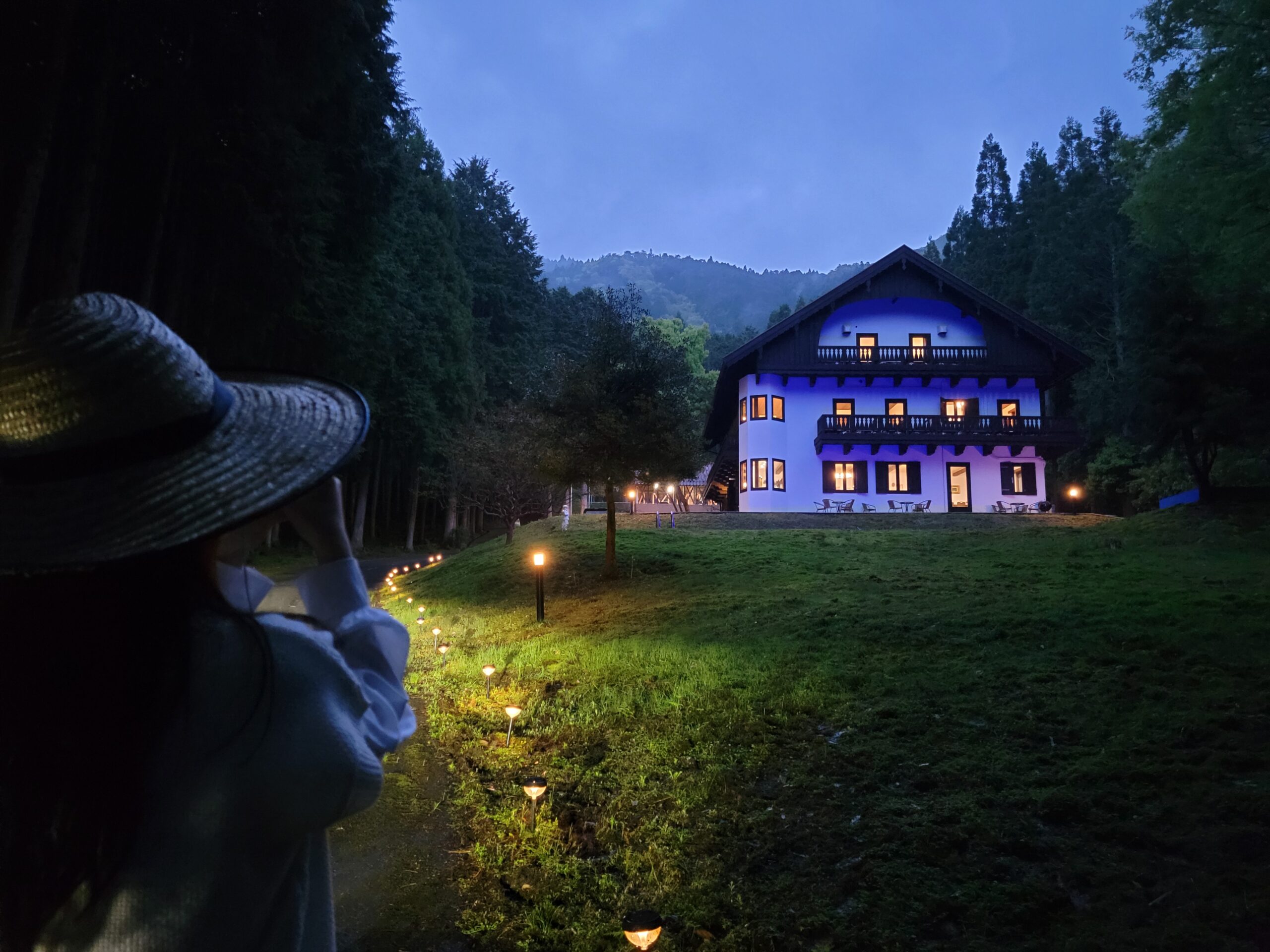 森に囲まれた宿泊施設は、夜になると温かな灯りに包まれ、一層魅力的な姿を見せます。 小道に灯されたランプが幻想的な雰囲気を醸し出し、訪れる人を非日常の世界へと導きます。 昼間の自然美とは対照的に、夜は静けさと優雅さに包まれ、心を癒してくれる時間を過ごせます。 特別な記念日や家族の旅行、ロマンチックな滞在を希望する方にぴったりの空間です。